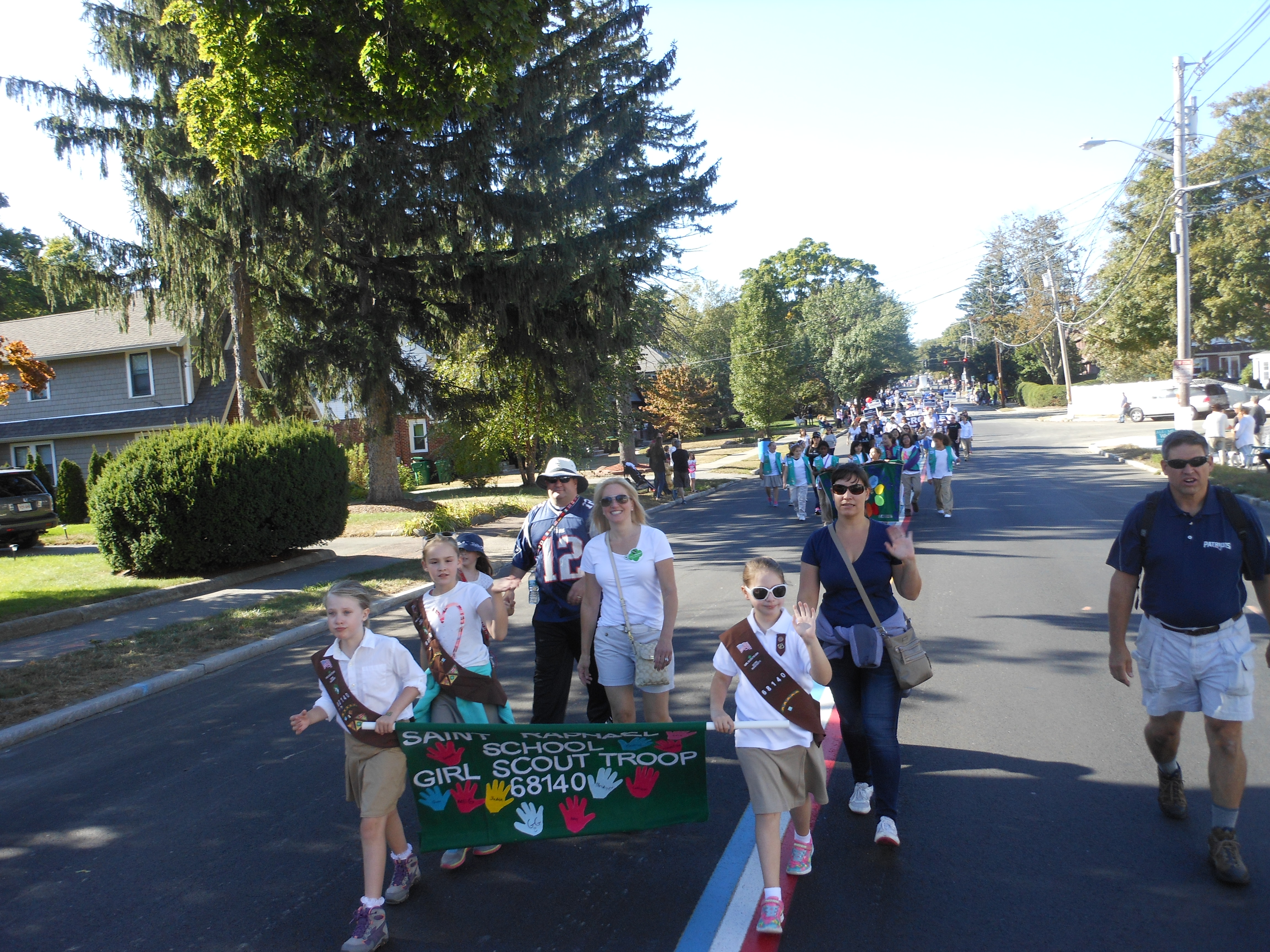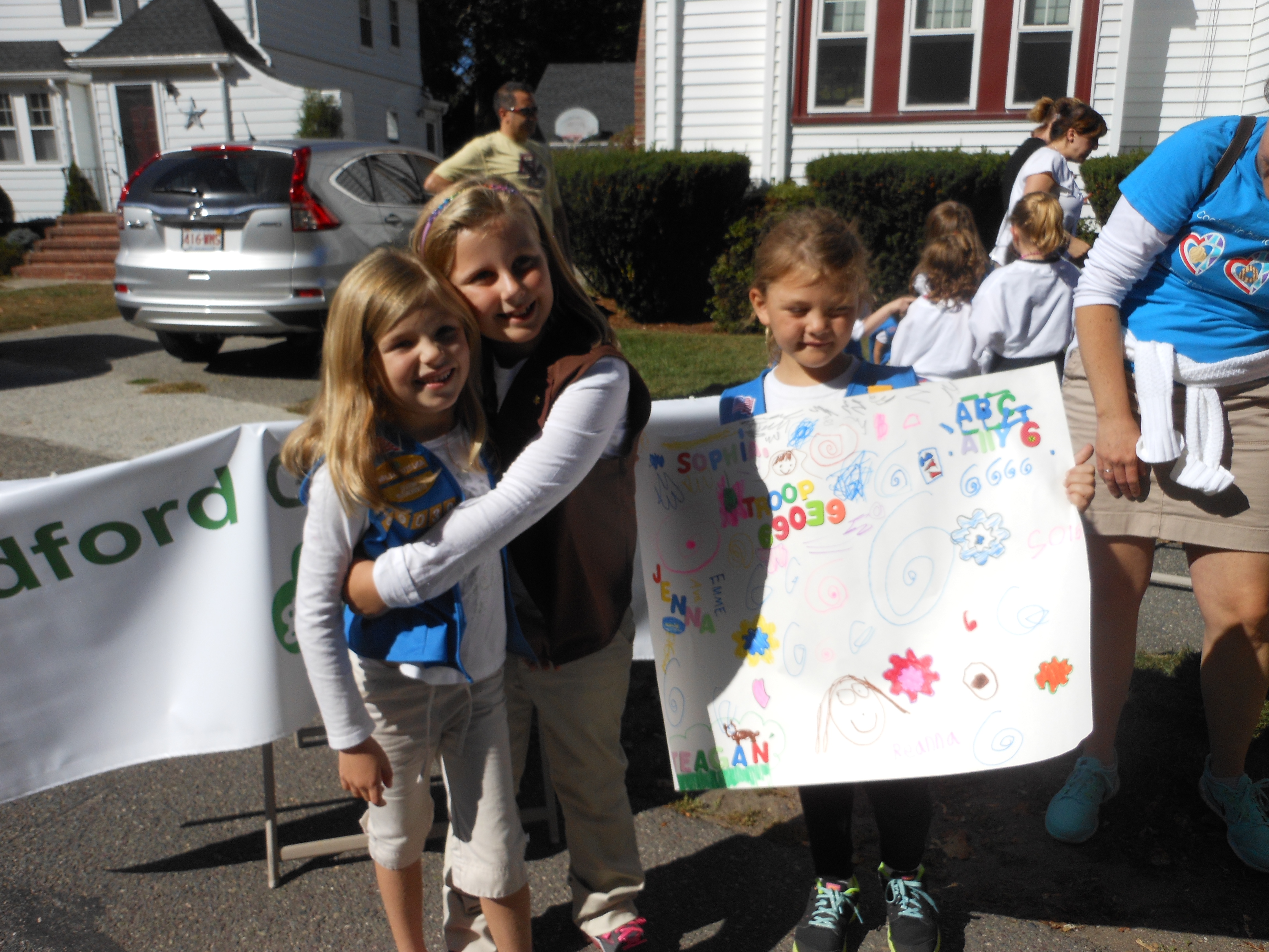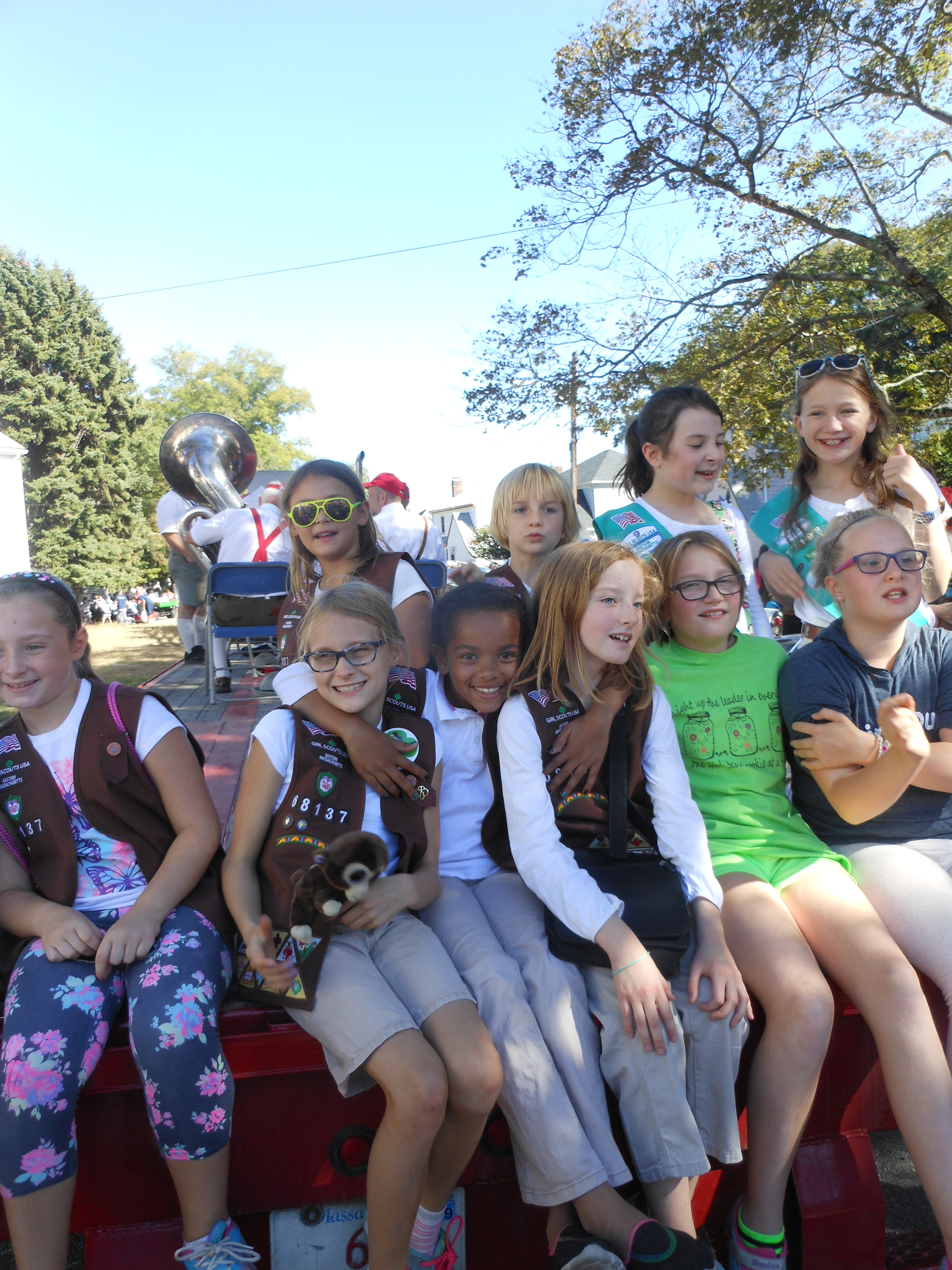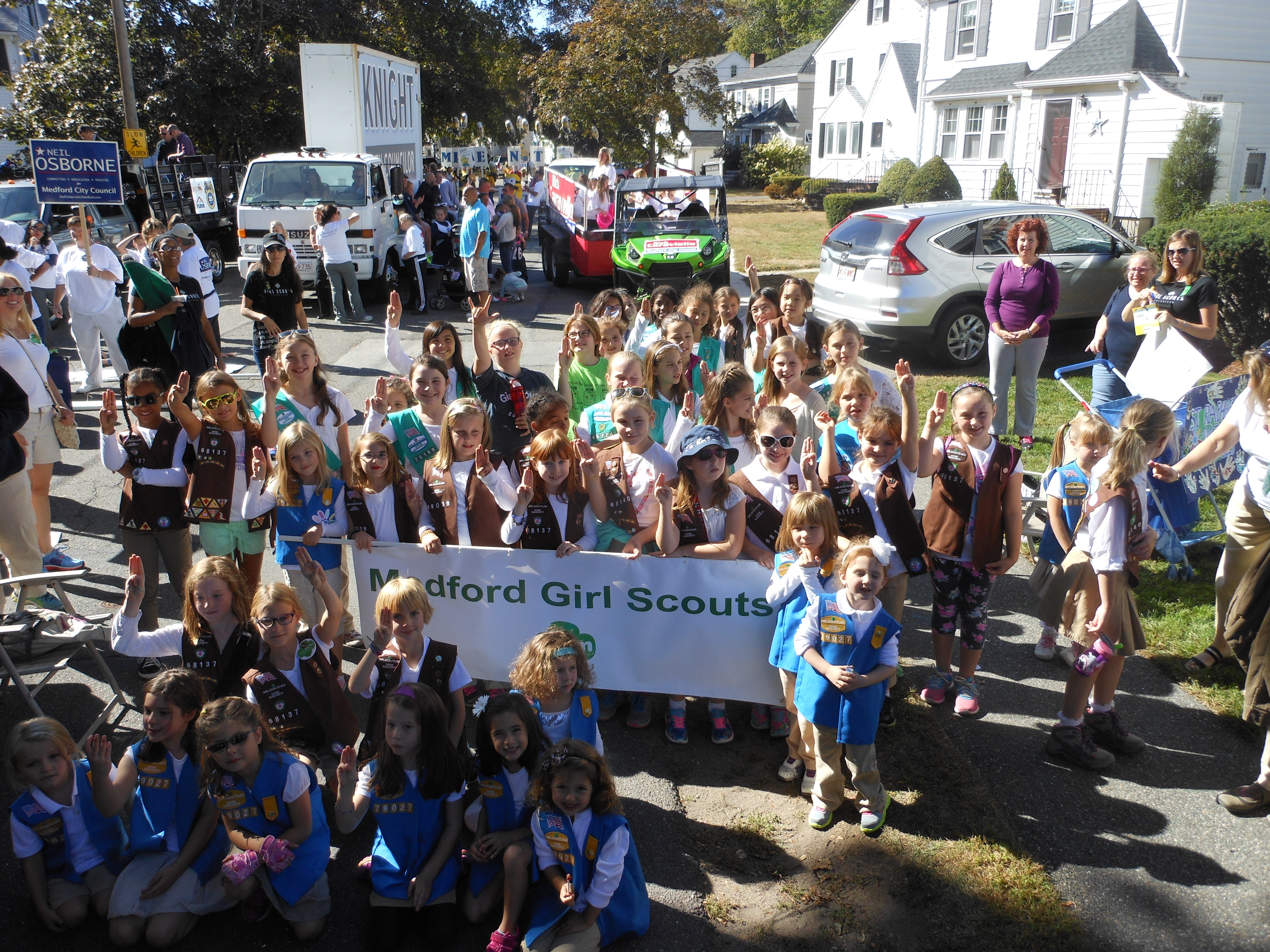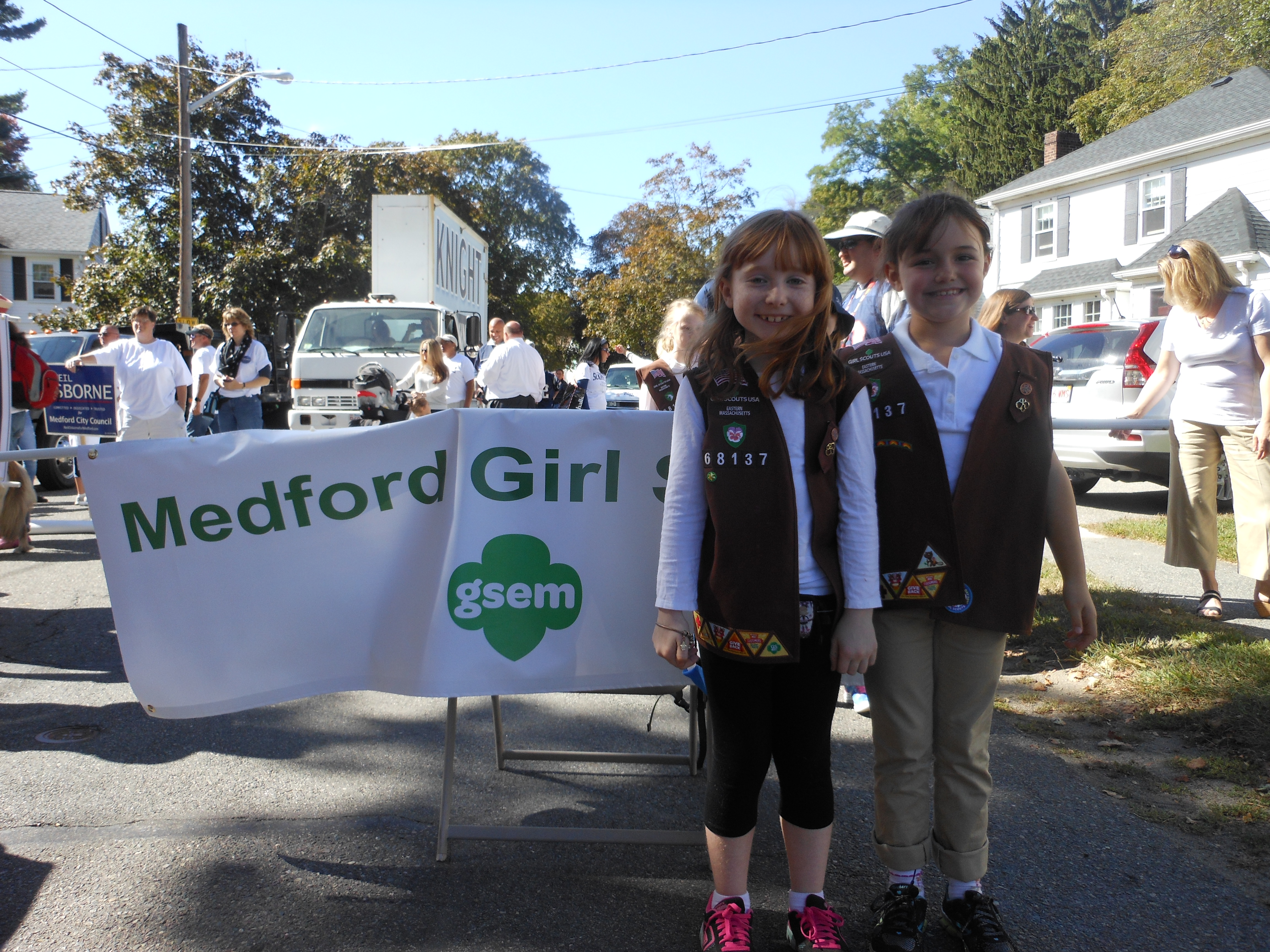 Medford Girl Scouts turned out in force today to march in the parade to celebrate Medford’s 385th  birthday!  Many parade watchers wondered where the cookies were, which bodes well for a strong cookie sale this winter.  Thanks to all the girl, parents, and troop leaders to participated!