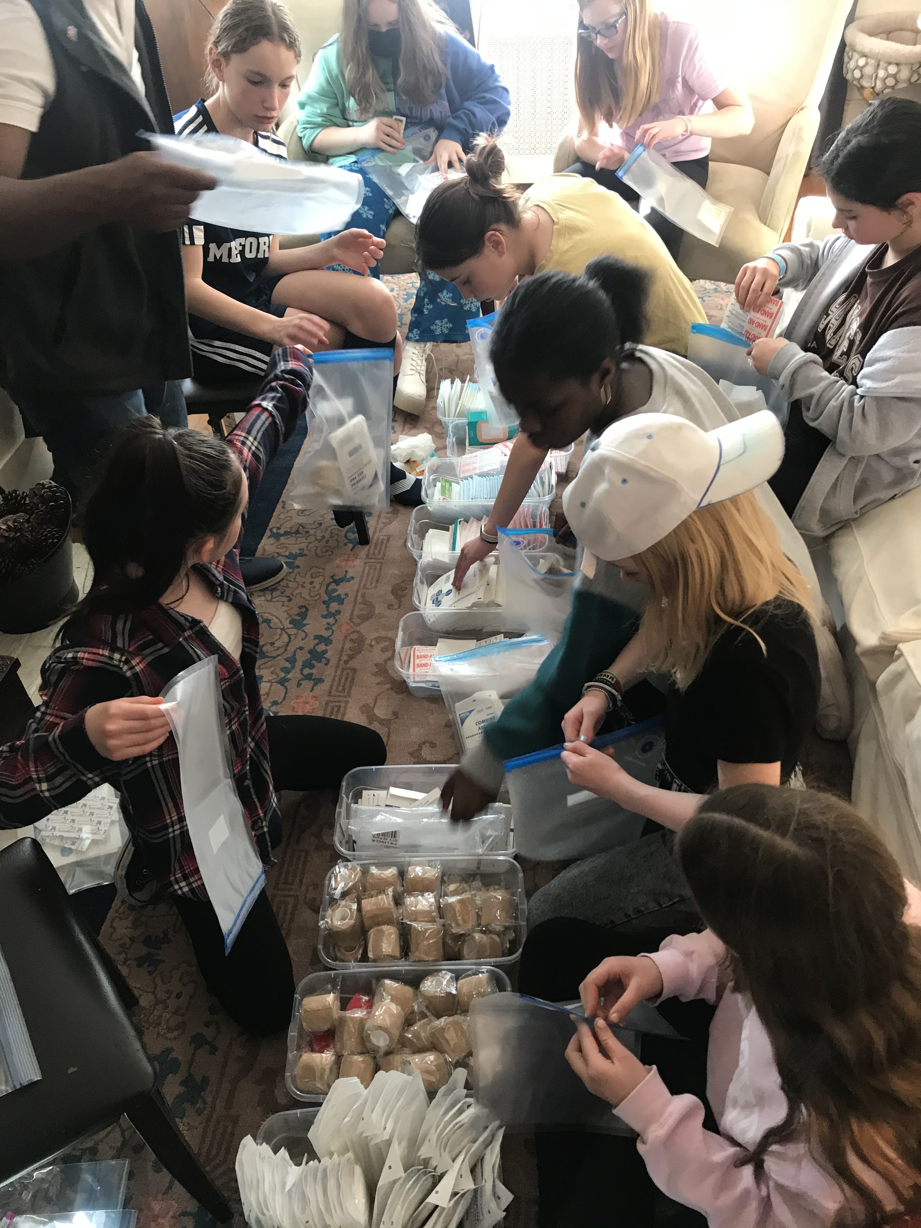 Girl Scout Cadette Troop 67712 making medical supply kits