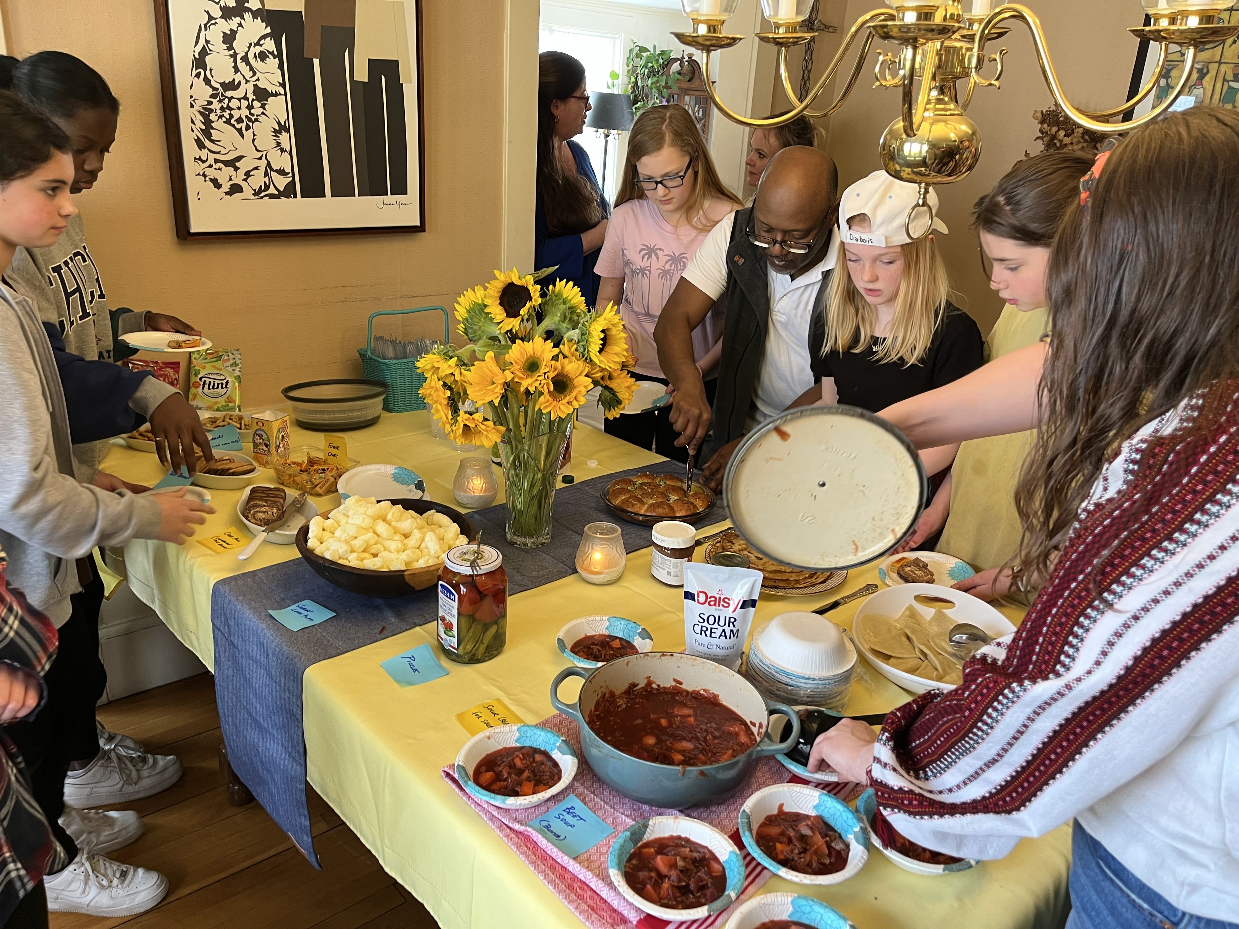 Troop 67712 from the Andrews Middle School and McGlynn Middle School in Medford, Massachusetts, met on Sunday, March 20, 2022 to sample Ukrainian food and learn about the unrest and the war besieging Ukraine from three guests offering different perspectives.