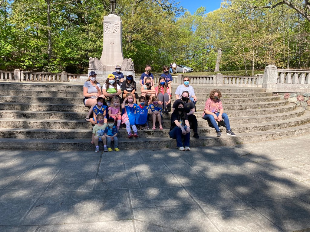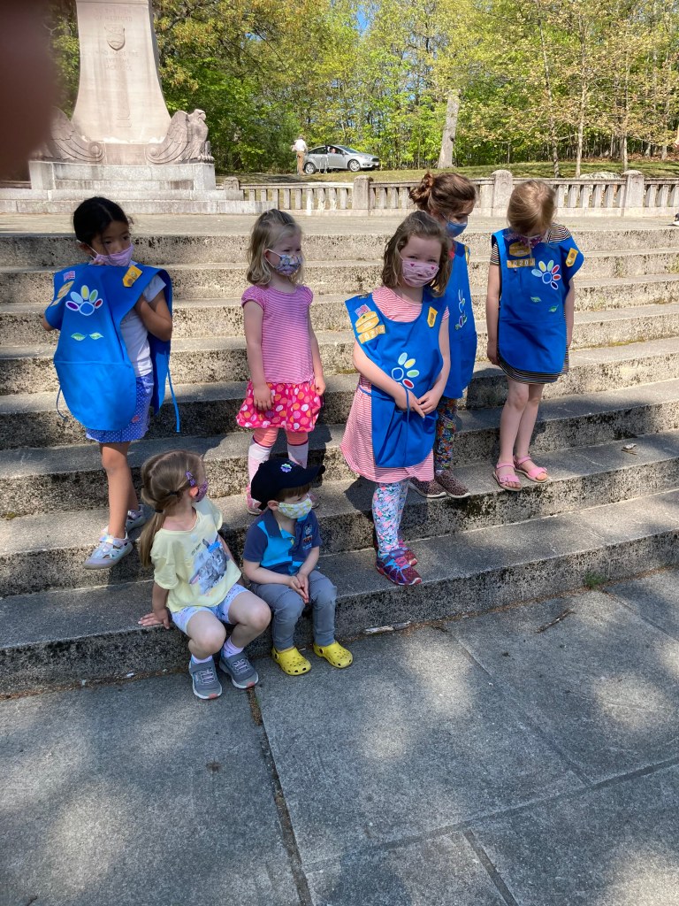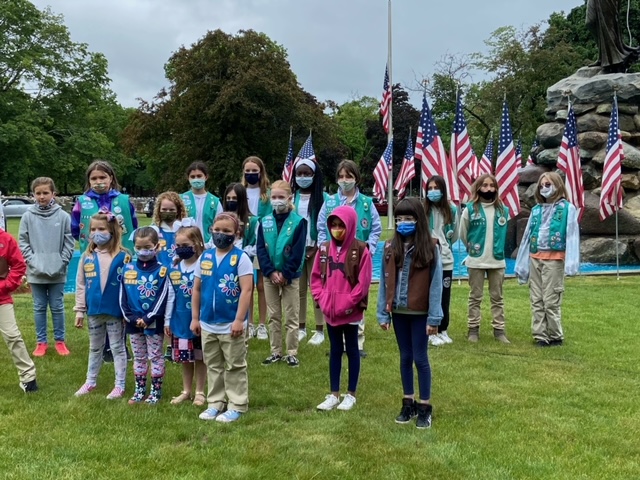 Special thanks to all the girls and their families who came to the Salem Street Burying Grounds to participate in Medford’s Patriot’s Day Ceremony. The girls collectively recited the Pledge of Allegiance, helped place flags on the graves on the Patriots, and then marched down to Medford Square to wait for Paul Revere to ride through town. It was perfect weather and a great turn out with girls from Daisy to Cadette troops represented.